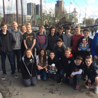 photo of the squads by their accommodation in Rotterdam Harbour