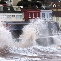 The site of the previous damage with its new high sea wall, below.